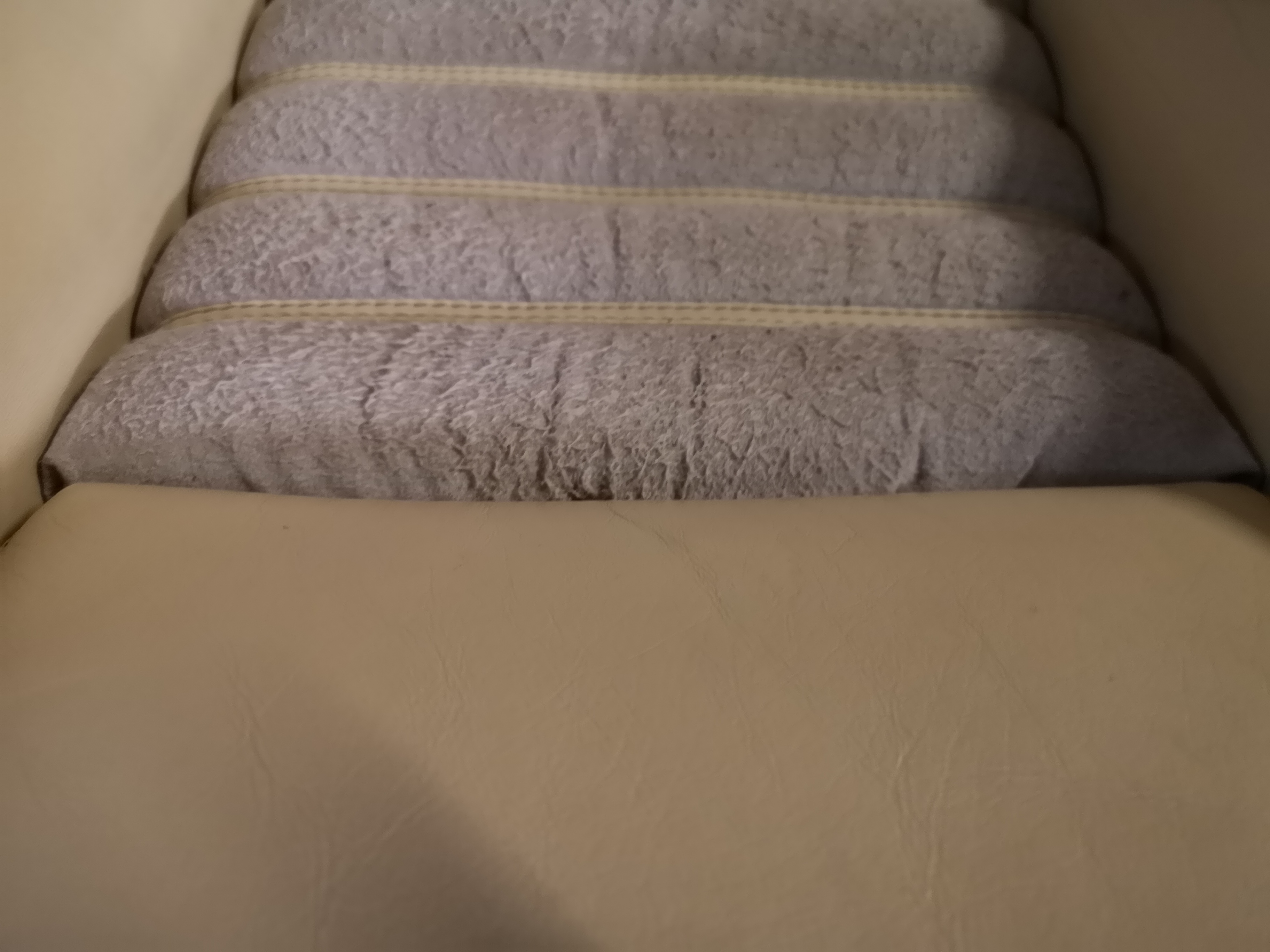 Ce siège est un mix de skaï sur les cotés, l'arrière du dossier et les retours latéraux, de cuir sur les côtés du dossier et de l'assise, ainsi que le repose-tête. L'alcantara, quant à lui garnit la partie centrale du dossier et de l'assise.