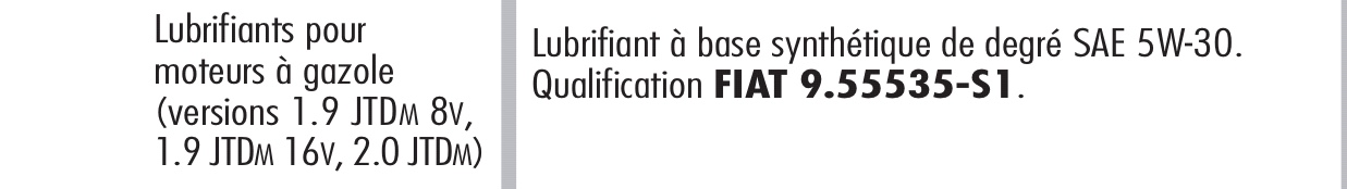 Il te faut une 05W30 pour le 2.0 Jtdm ... il y a une norme Fiat à respecter :