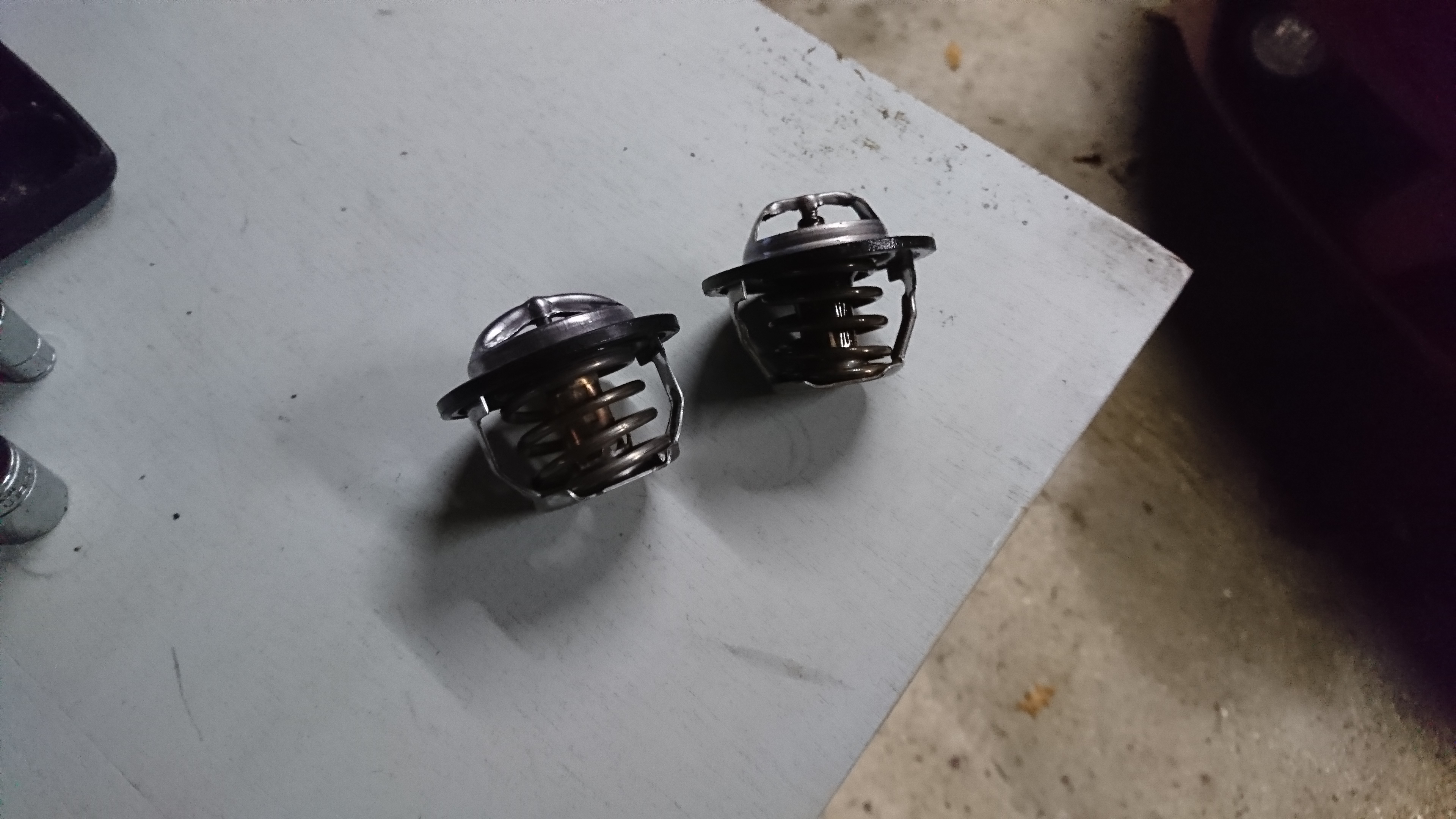 Donc je change ce dernier, qui effectivement était bien bloqué en position "fermé". A noter que c'est plus simple que sur les JTD car ce n'est que le mécanisme de ressort à changer, et pas tout le corps du calorstat avec les durites, mais plus ch*ant car l'accès est clairement moins aisé.. Faut avoir de petites mains
