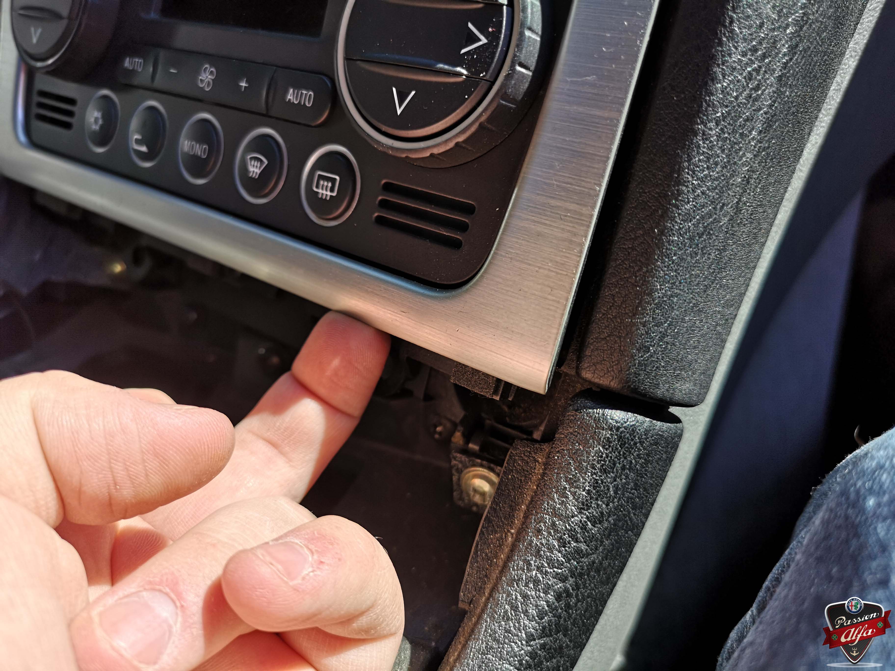 Tirer délicatement l'enjoliveur du levier de vitesse vers le haut. J'ignore comment c'est foutu sur la 159 (la partie basse est légèrement différente mais le fonctionnement identique) mais sur la Brera / Spider, les connectiques des boutons de Warning / ESP / Verrouillages des portes se "coincent" dans la console centrale. Il faut donc y aller doucement pour ne pas tout casser :