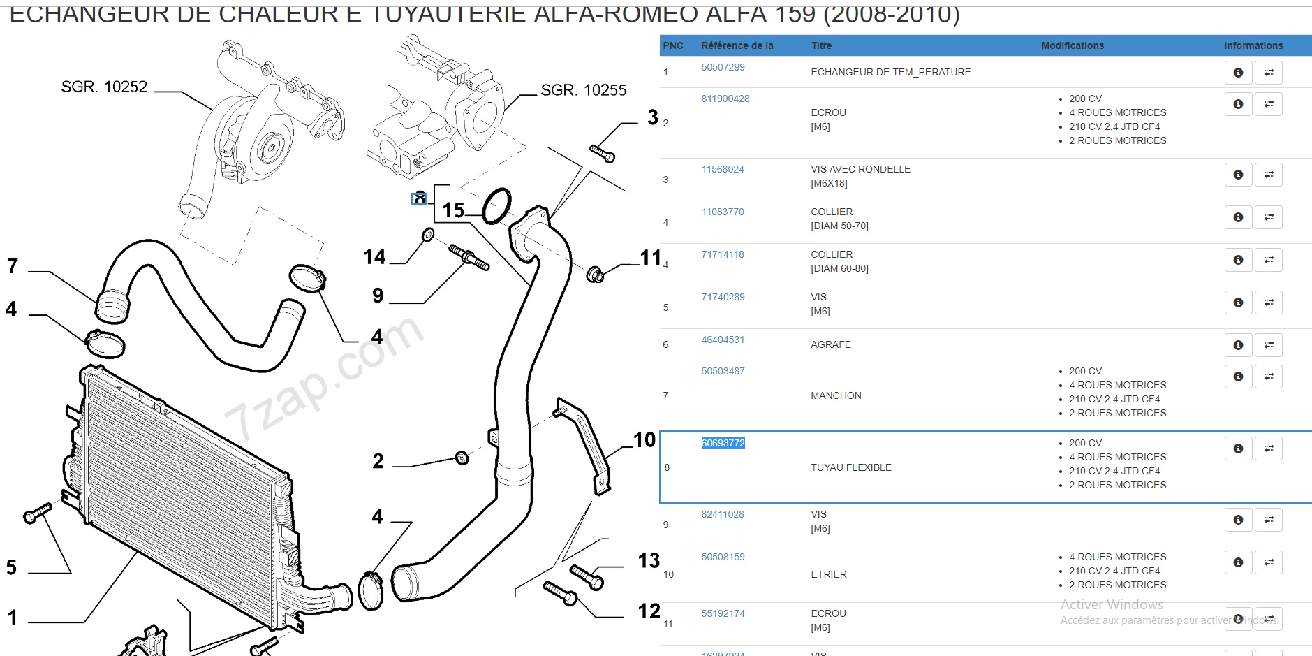Pour les durites celle du bas n°7 : https://www.ebay.fr/itm/ALFA-ROMEO-159- ... 2607319055