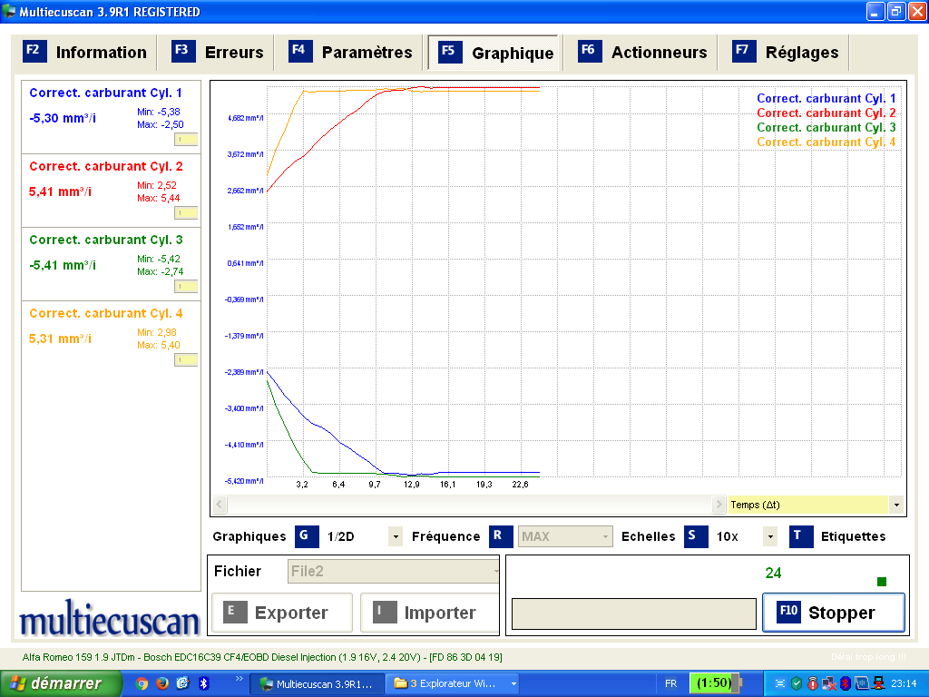 rien à faire ça marche pas...ce serait le connecteurs des injecteurs défaillant même si j'arrive à lire e code de l'injecteur et faire un graphique ?