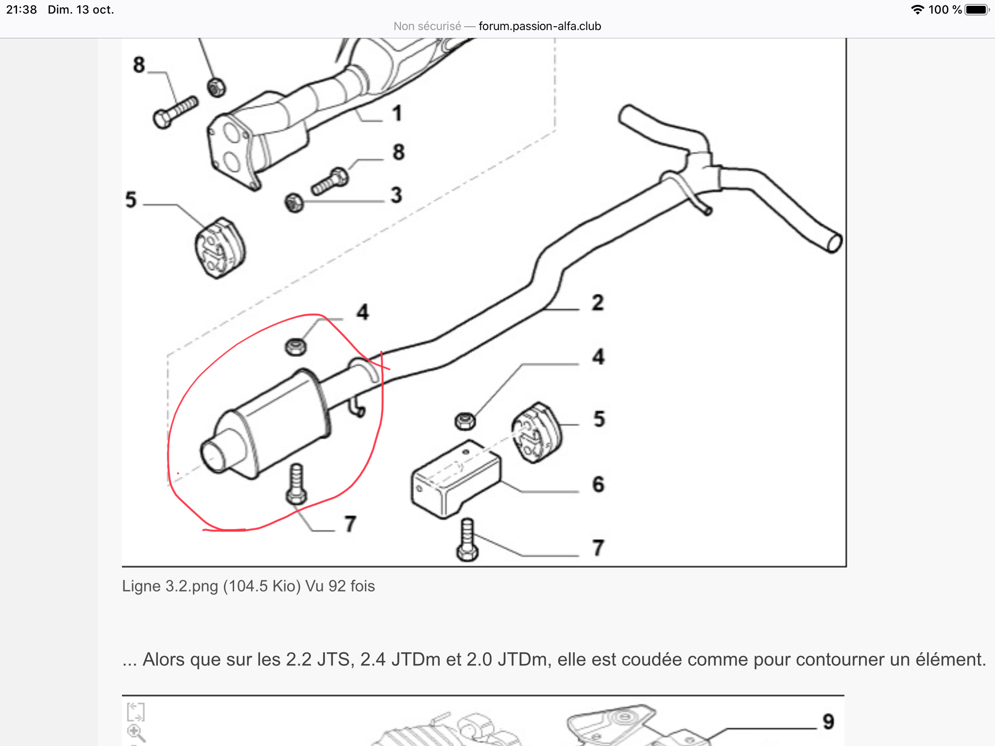 Sur le 3.2, la ligne entre le silencieux intermédiaire et la "séparation" (ce n'est sûrement pas le vrai terme