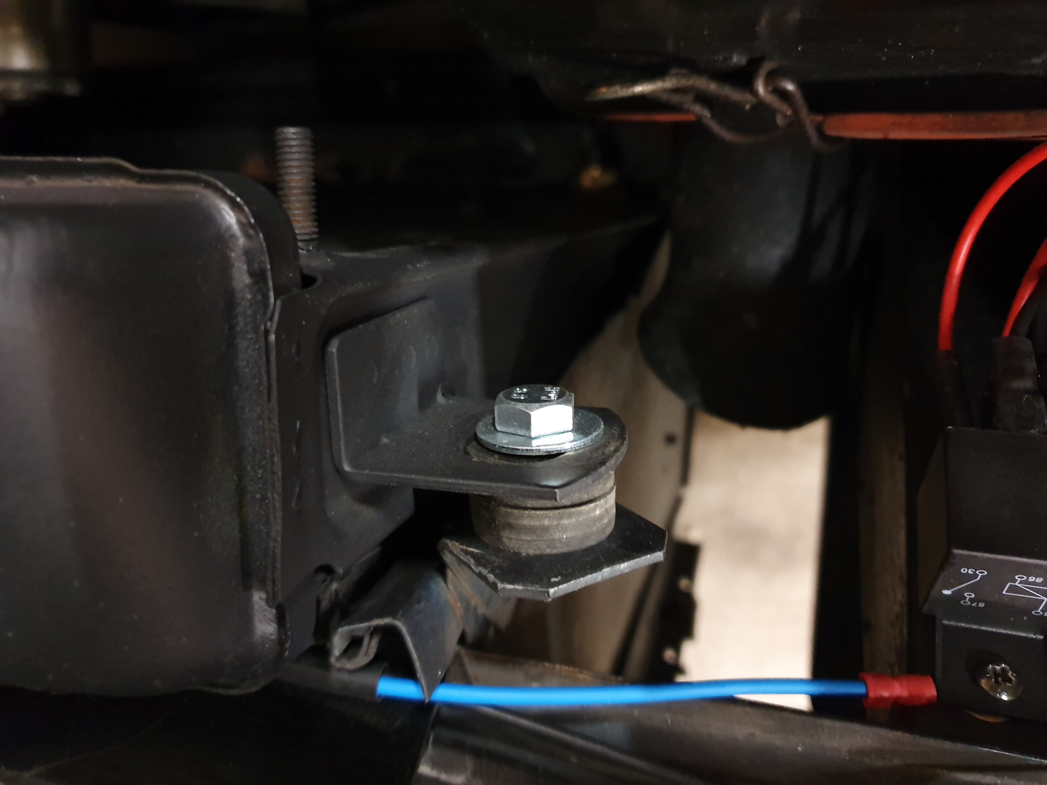 puis montage d'un relais , j'ai pris un + avant contact sur la boite à fusible ,comme ça moteur coupé le ventilo tourne quand même ...