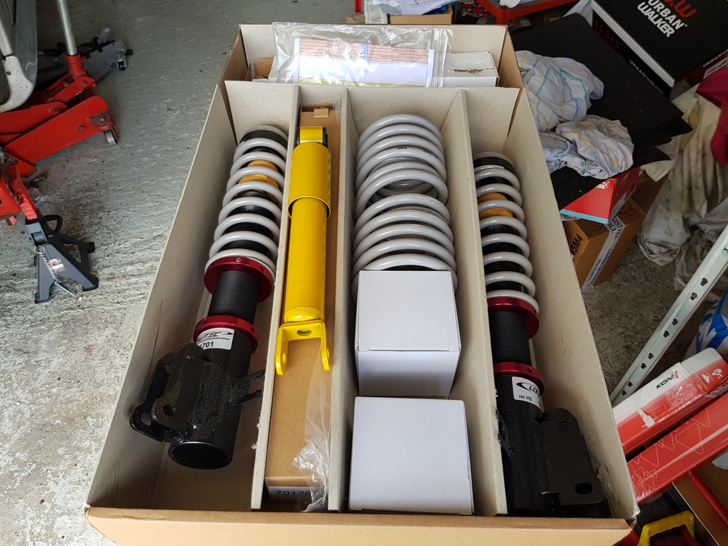 donc j'ai décidé de remonter les ressors d'origine et des amortisseurs Koni