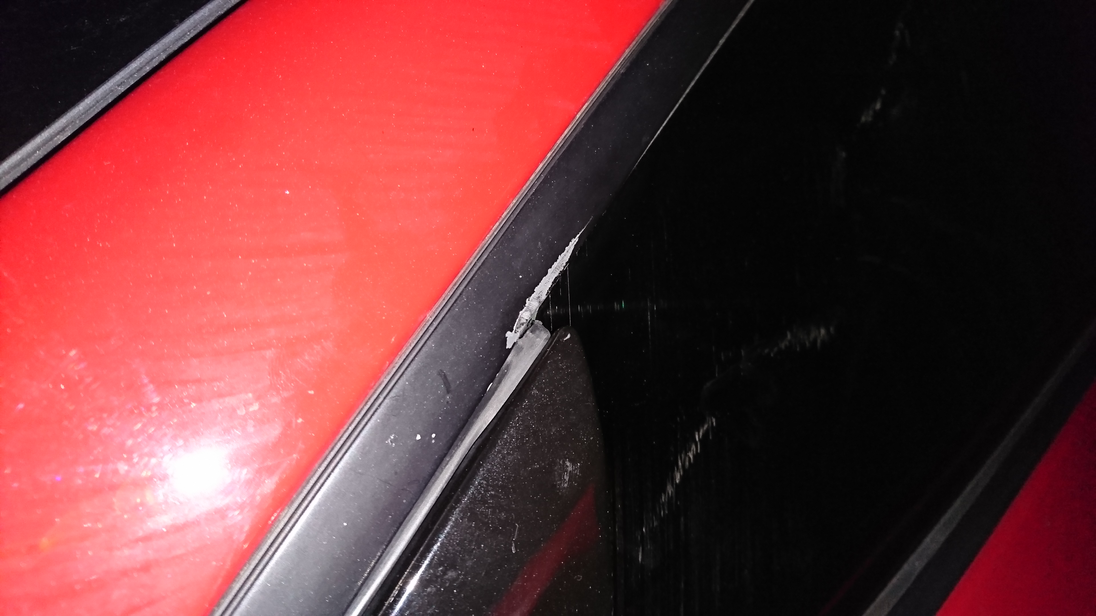 J'ai pas fait gaffe en refermant, mais comme la vitre n'était pas descendu ben ça a directement touché l'armature...