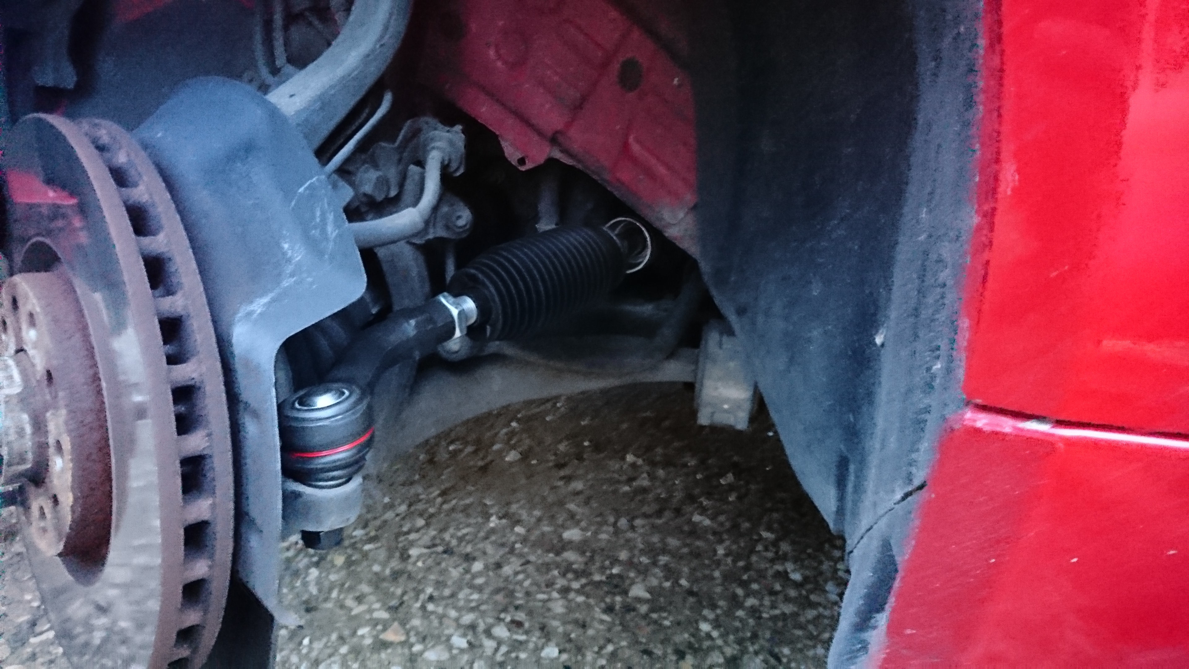 Je m'installe, met Miss Brera sur Chandelles et je démonte la rotule AVG déjà changée le WE dernier. Effectivement il y avait un demi-cm de trop au niveau du filetage par rapport à celles d'origines.