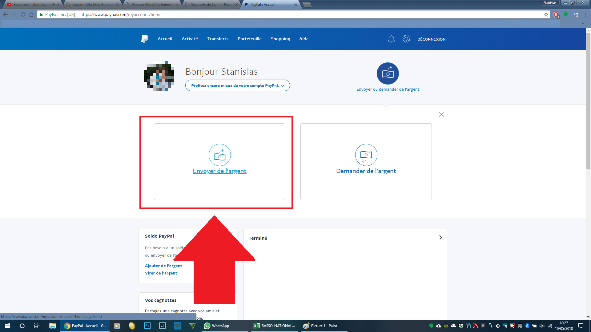 Dans notre cas, nous allons cliquer sur "Envoyer de l'argent.