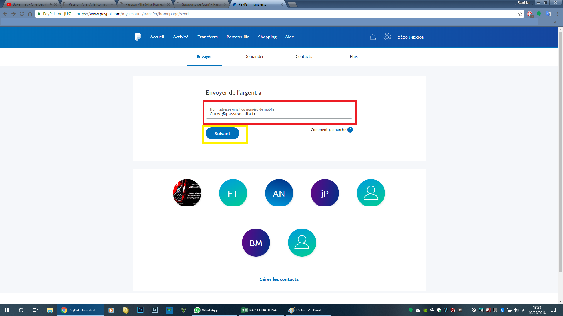 En dessous (encadré rouge), vous devez avoir d'indiqué "envoyer de l'argent à un ami". C'est très important, si ce n'est pas le cas, cliquez sur modifier et choisissez ce mode de paiement.