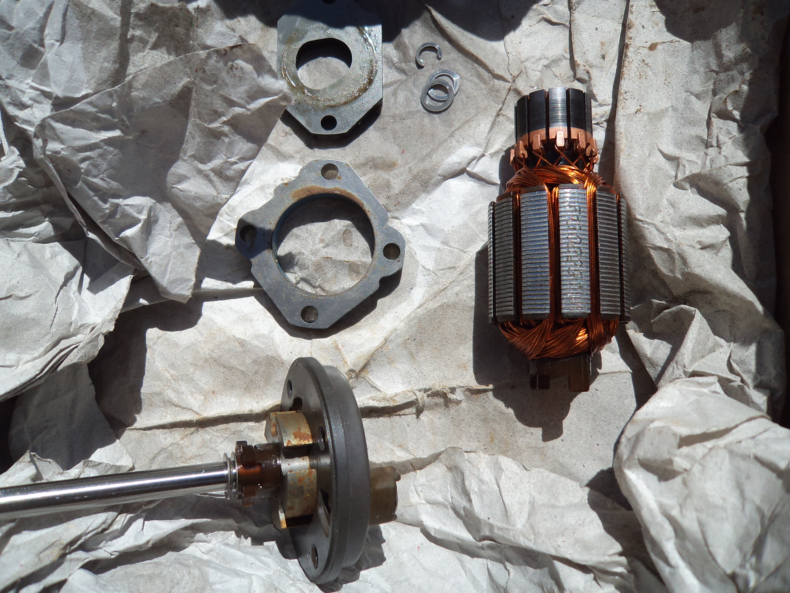 ...là, vous observez les balais, charbons, nickel, la plage en cuivre sur le rotor aussi, le moteur en soi est nickel... à moins d'un défaut de bobinage, peu probable...