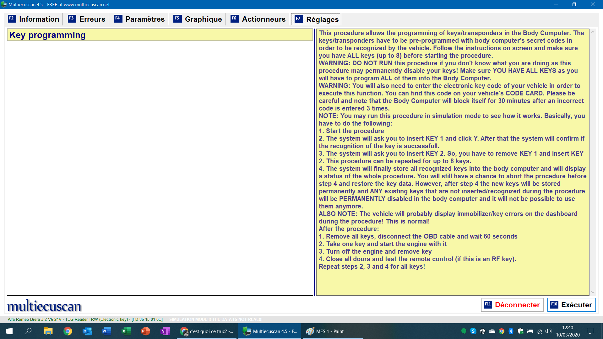 Néanmoins je te conseille quand même dans un premier temps de ne pas reprogrammer tes anciennes clés. Vaut mieux pour toi te laisser les équipements d'origine si ça merdouille et que tu as besoin de redémarrer ta Brera. Si ça fonctionne, tu pourras les rajouter (si tu veux plus de 2 clés...).